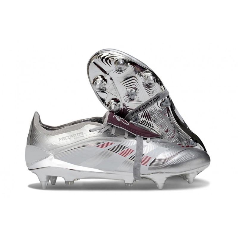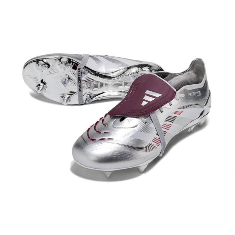 Bota adidas Predator Foldover Tongue de rendimiento profesional desarrollada para campos de césped natural que esté húmeda. Elementos de goma dispuestos en toda la zona interna y lengüeta para darnos un extra de agarre y efecto cuando golpeemos el balón.
